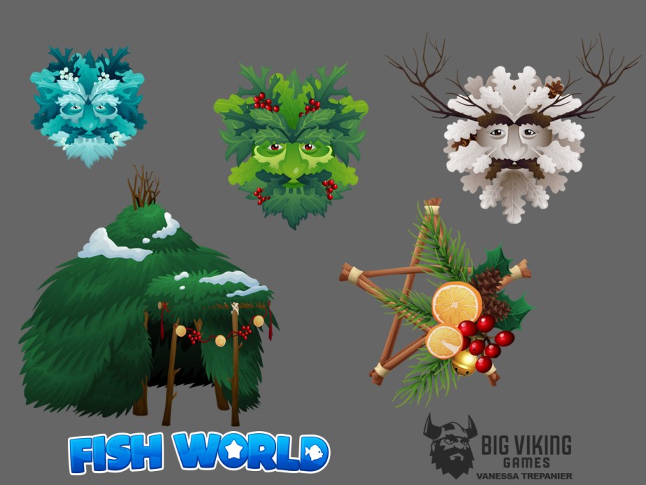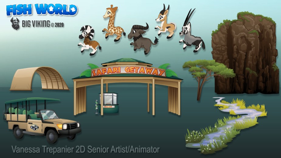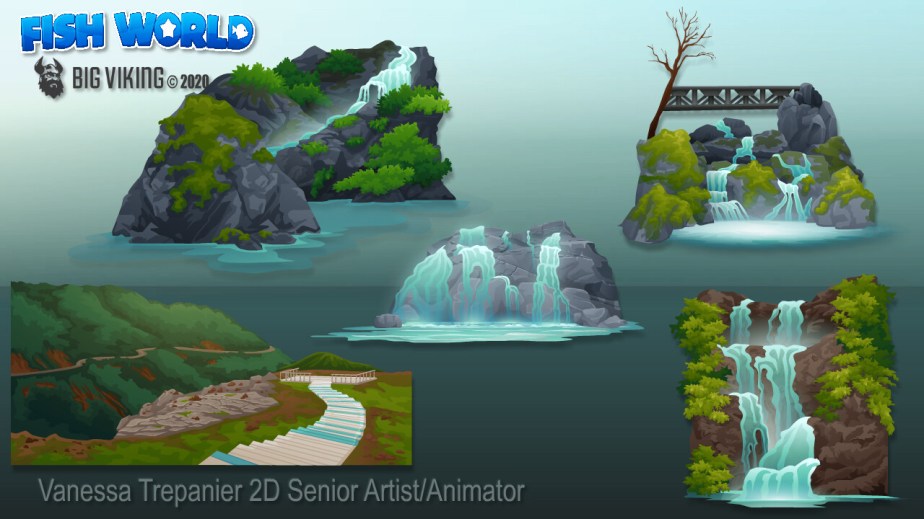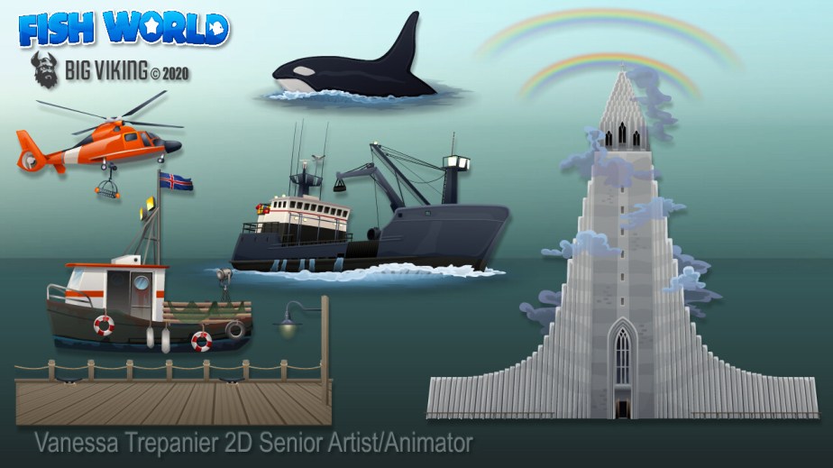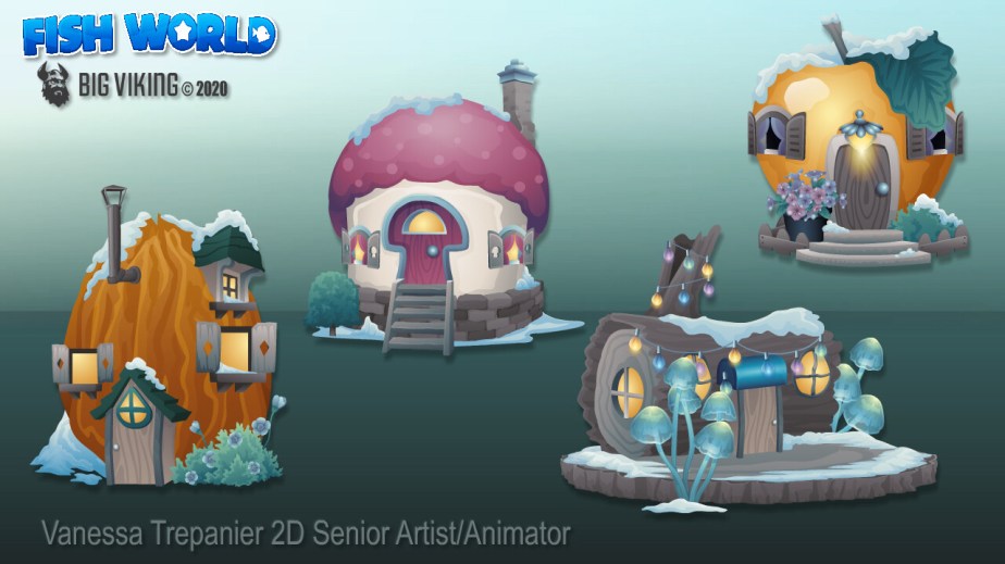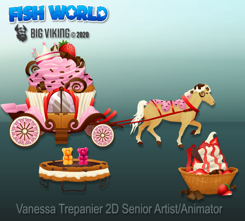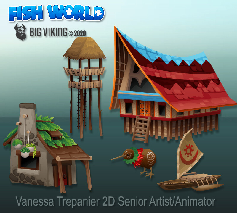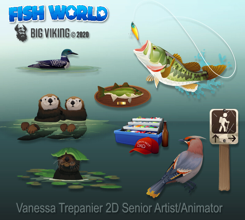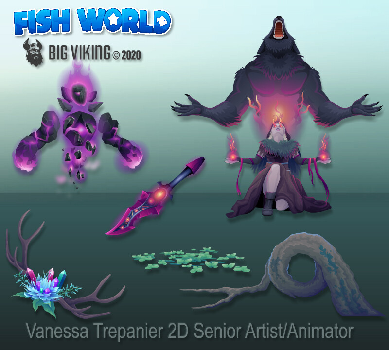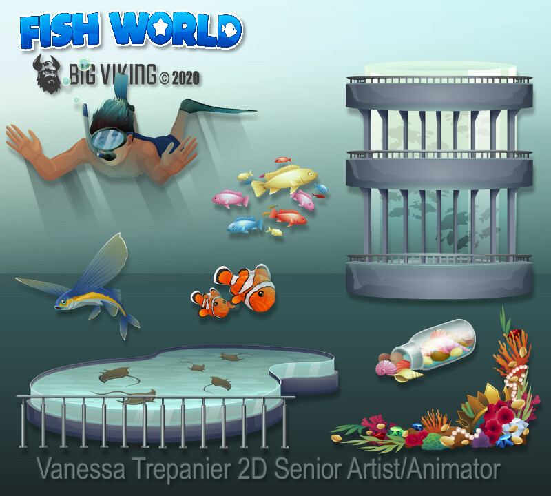 Fish World is a successful, live social game with decorating & casino gameplay, that has fans from all over the globe. This gallery includes environmental & prop design, character design, creature design, UI/UX, VFX animations, and concepts.